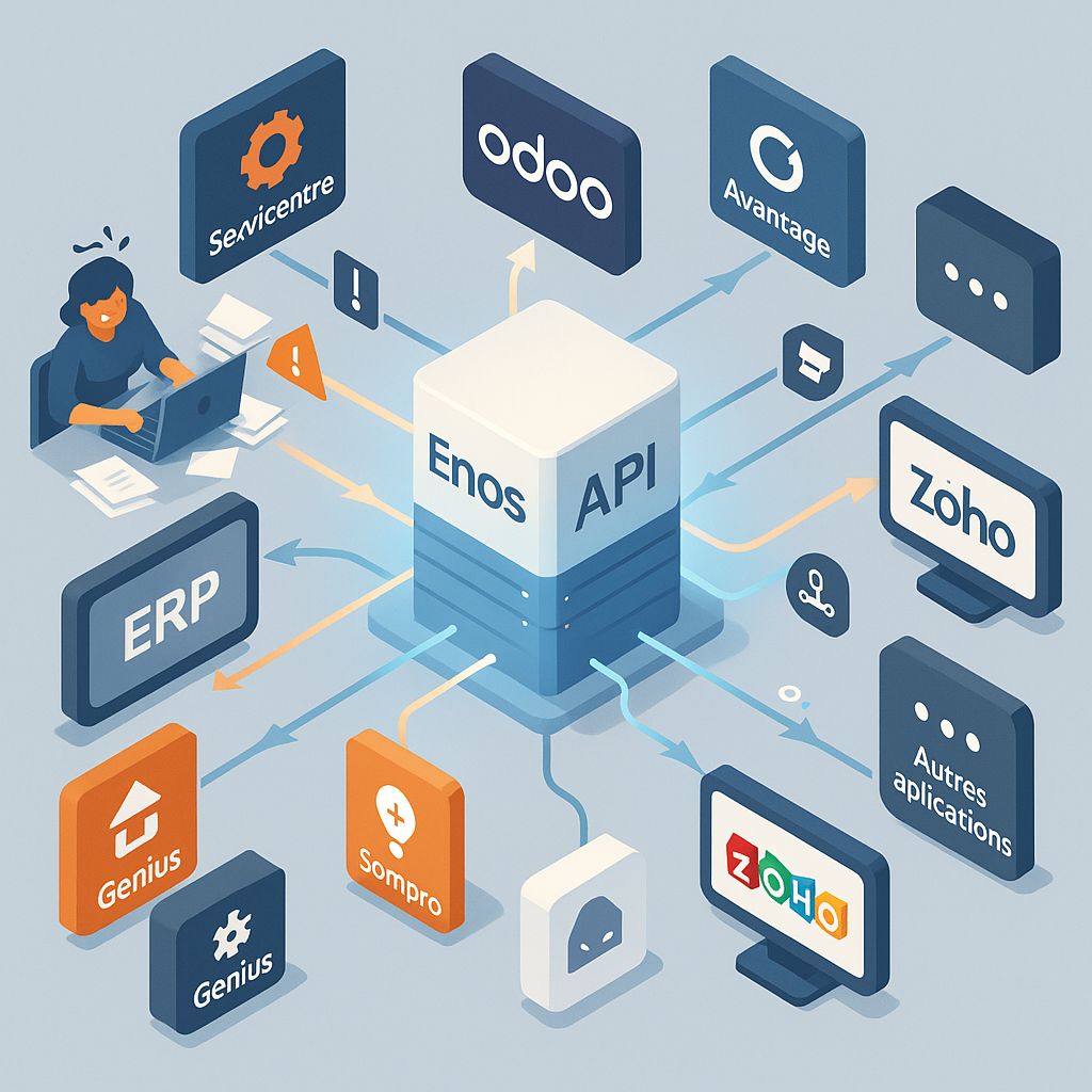 Avant l’intervention d’Enos, nous devions ressaisir les mêmes informations dans plusieurs systèmes, ce qui entraînait des erreurs et des pertes de temps entre les ventes et la production. L’équipe a mis en place une synchronisation automatique entre Servicentre et Zoho, tout en assurant la compatibilité avec nos outils comptables comme Acomba. Aujourd’hui, nos données circulent sans friction, nos processus sont plus efficaces et nos équipes peuvent se concentrer sur l’essentiel plutôt que sur la saisie manuelle.